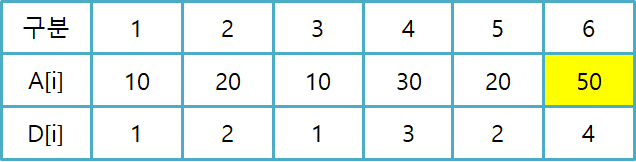 A[6] > A[4]이므로 D[6] = D[4] + 1 = 4입니다.