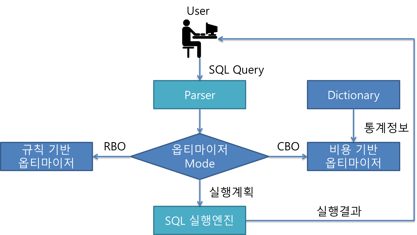 사용자가 작성한 SQL을 Parser로 파싱한 다음 옵티마이저 mode에 따라 옵티마이저가 선택됩니다.