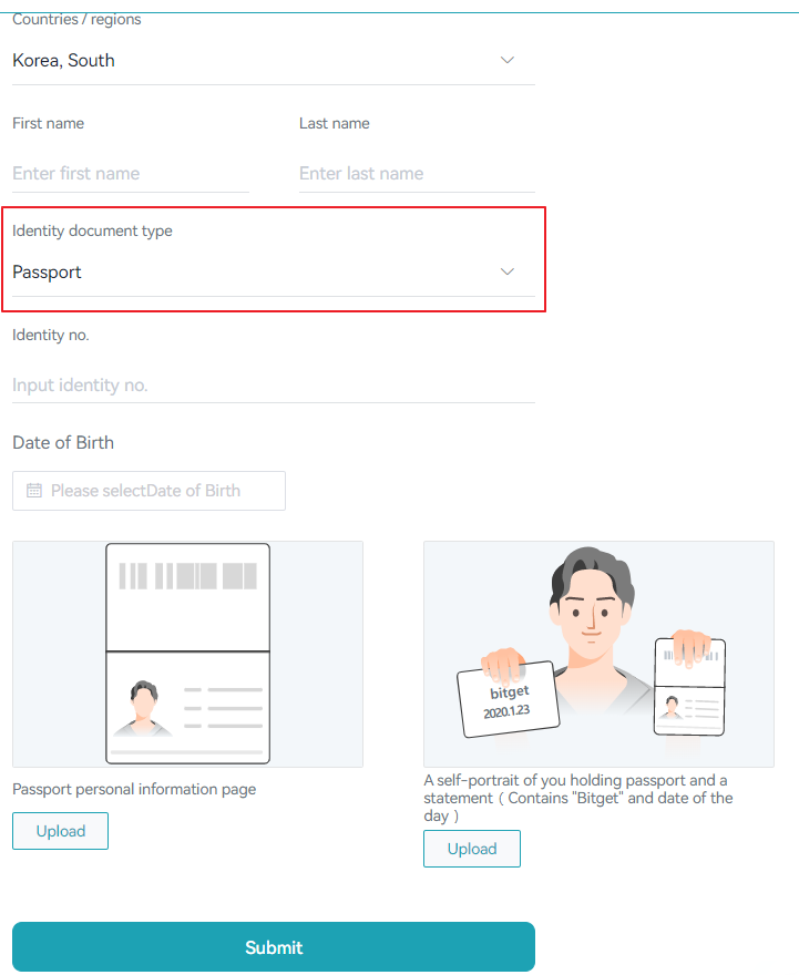 한 손에 "bitget 오늘날짜"를 적은 종이와 여권을 들고 셀카를 찍어서 두번째 upload에 올리셔야 합니다.